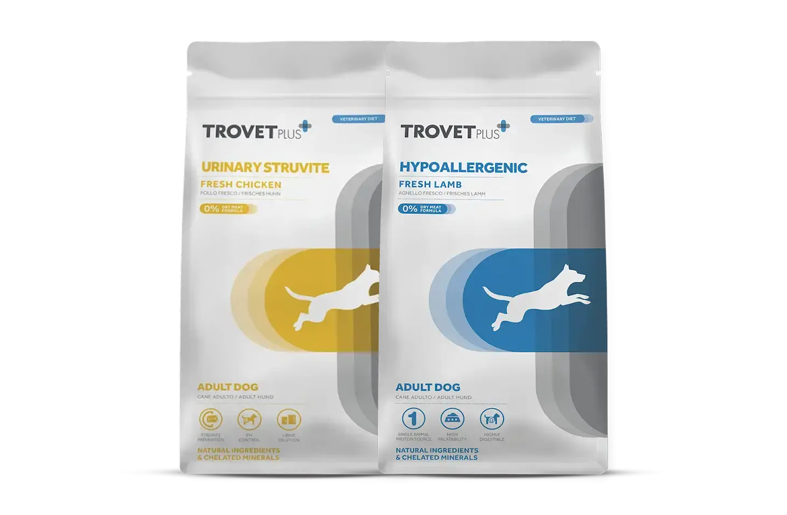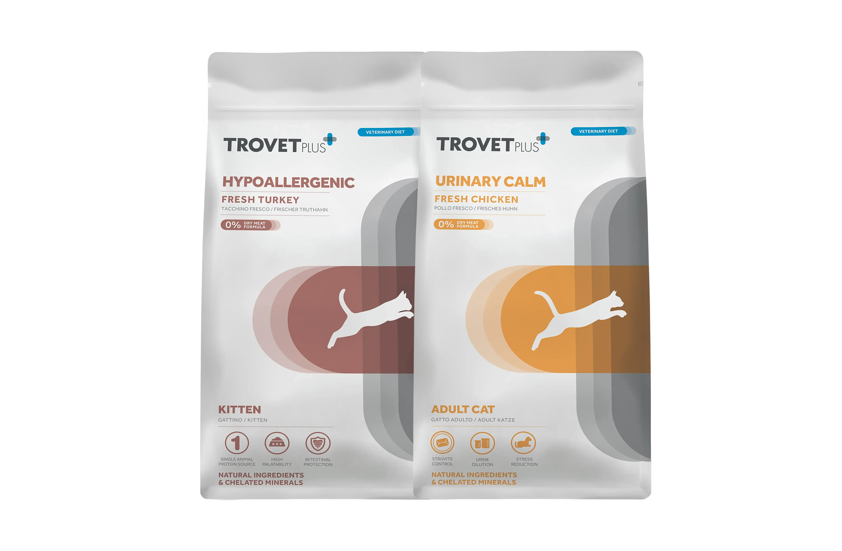 TROVET пропонує як базові (maintenance), так і спеціалізовані (дієтичні) корми — можна підібрати під будь-які потреби.